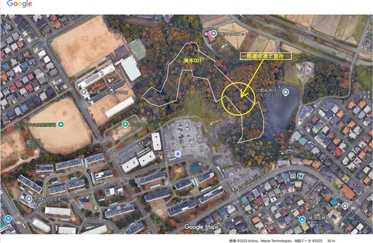 埋立てや造成に関する許可等について何れも無許可であり、盛土規制法、廃棄物処理法等に違反していることから神戸市より行政指導を受けている。