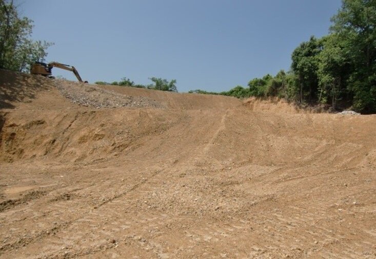 一部立木等が取り除かれ、造成途上のような状態にあり、造成途上状態の箇所にはコンクリートガラが残置されている箇所があるほか、地表に廃材や瓦礫等が見えている部分もある。