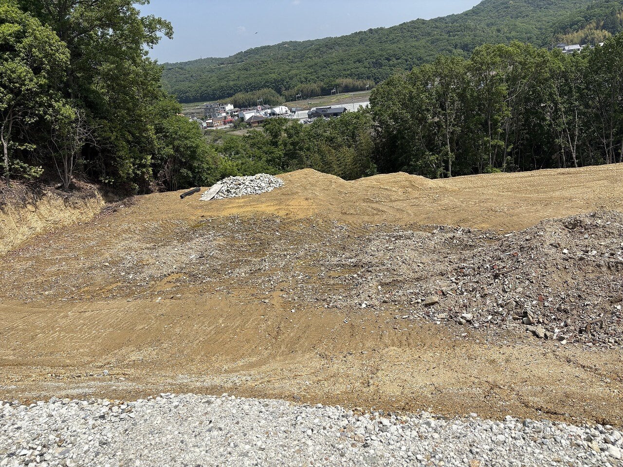 一部立木等が取り除かれ造成途上のような状態にあり、造成途上状態の箇所にはコンクリートガラが残置されている箇所があるほか、地表に家屋や解体の廃材や瓦礫等が見えている部分もある。