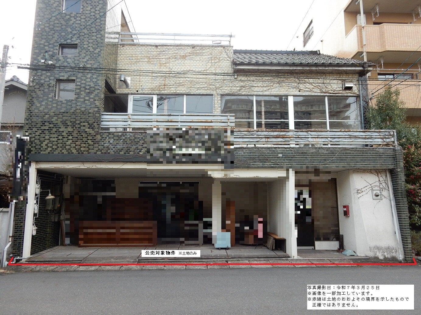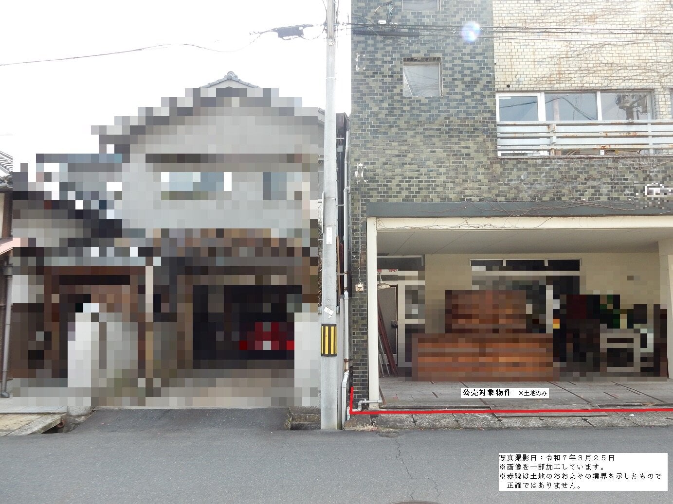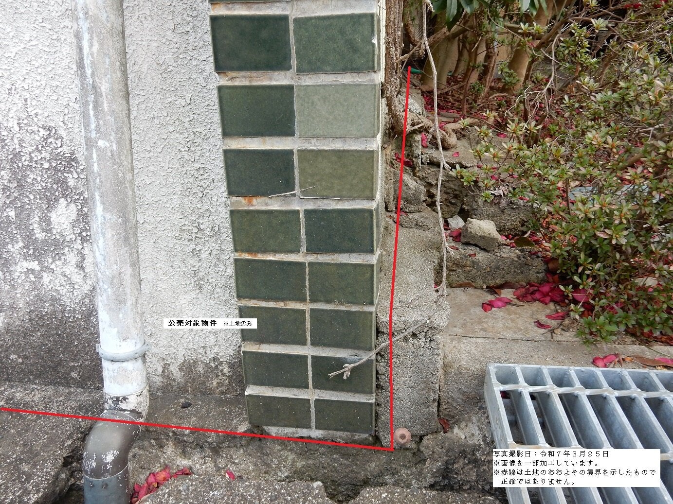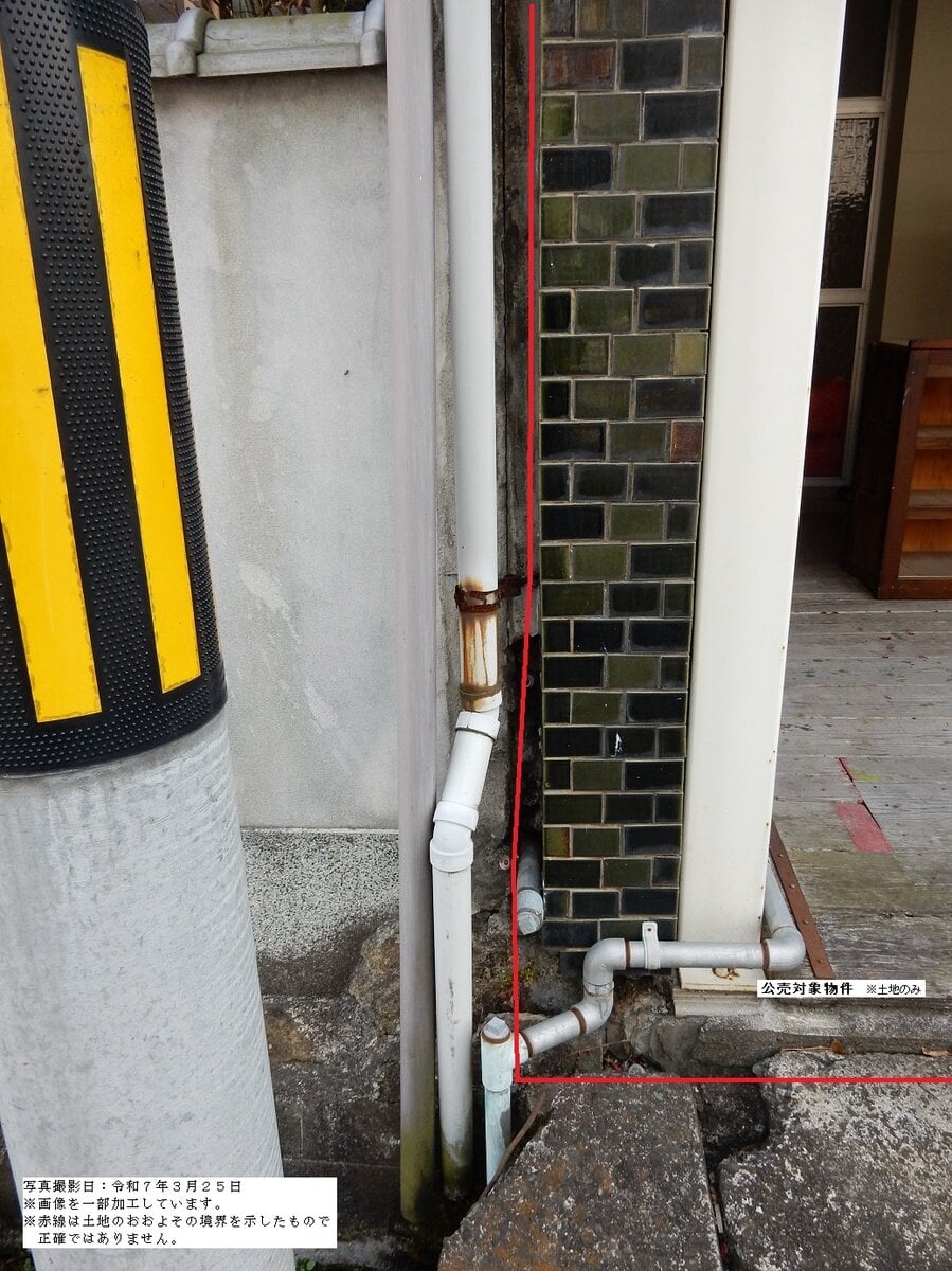 ・公売財産の東面は隣地と建物同士が密接しているため、境界付近の状況を確認していない。