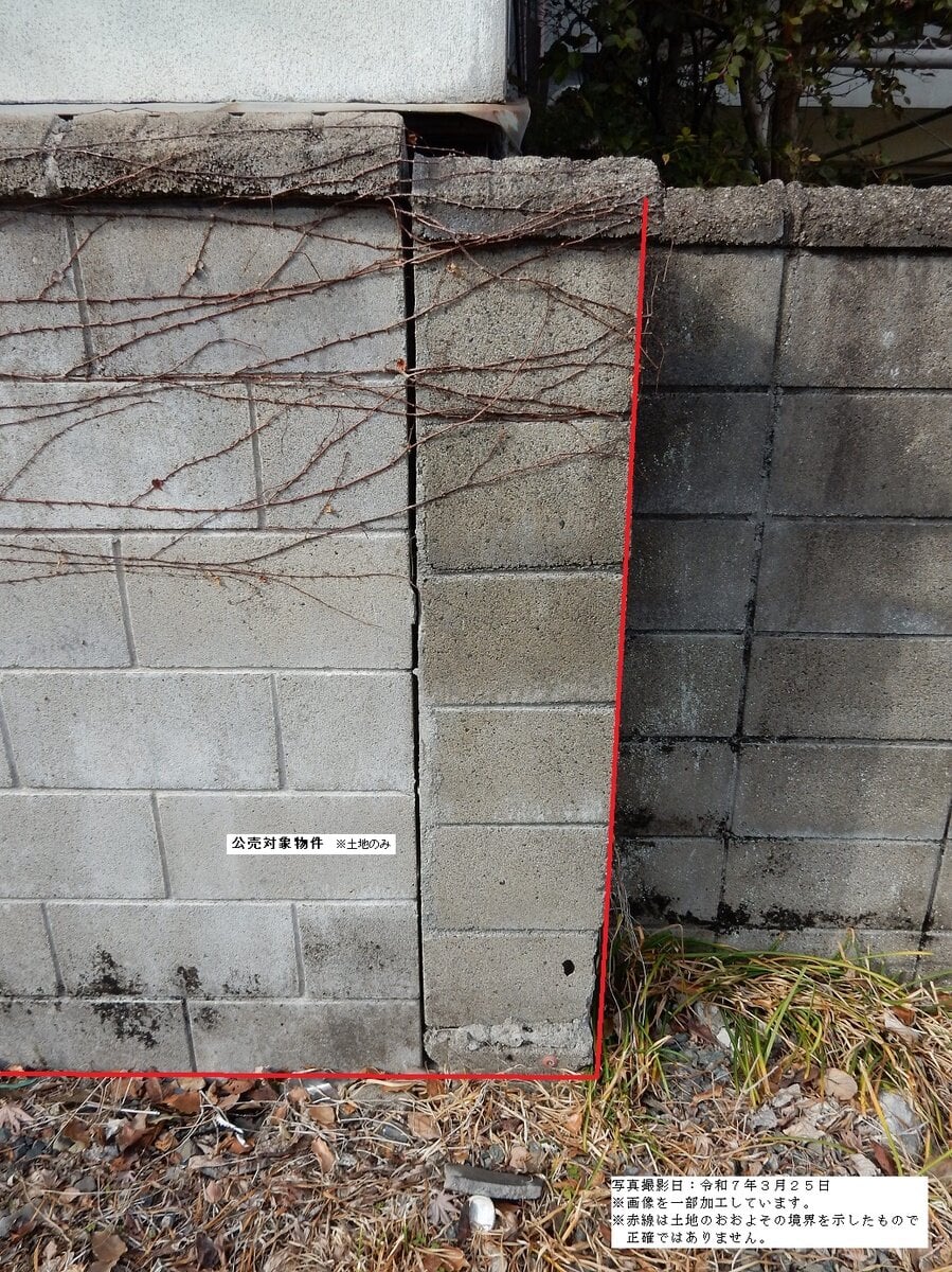 ・公売財産の西面及び南面は、建物又はブロック塀で隣地と仕切られており、これら建築物・構築物は公売財産の内部にあると思われる。