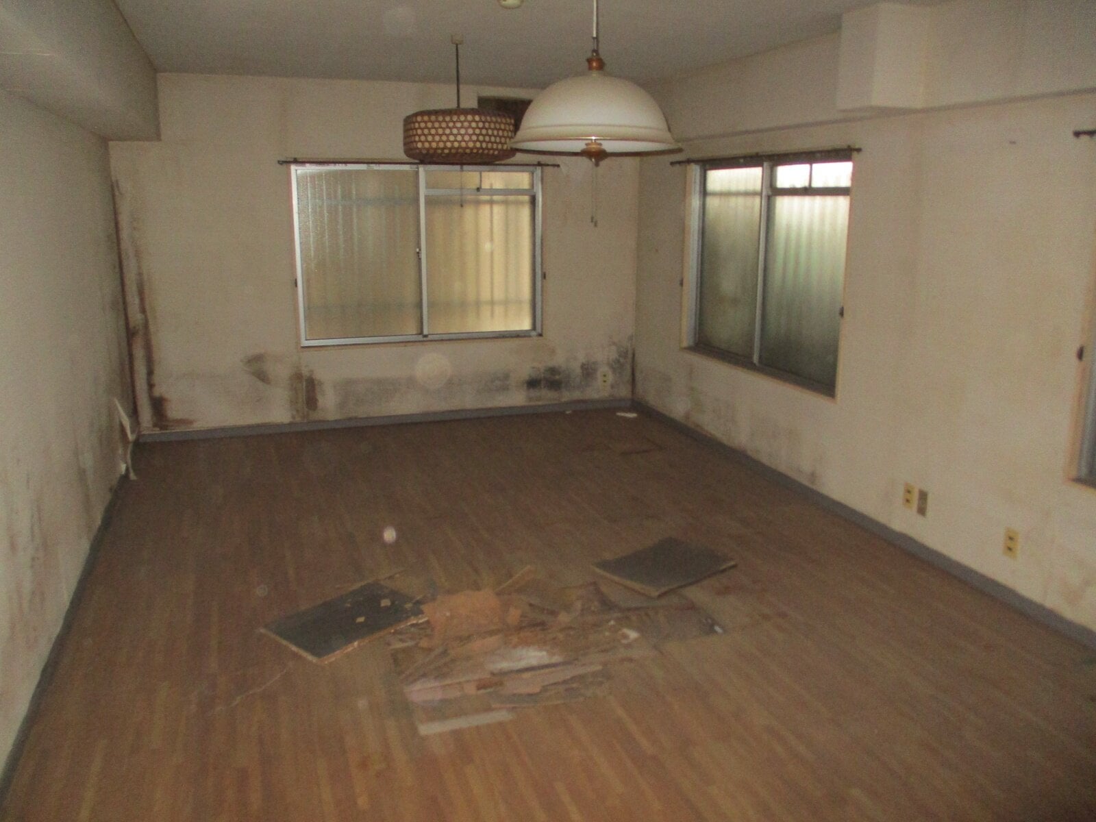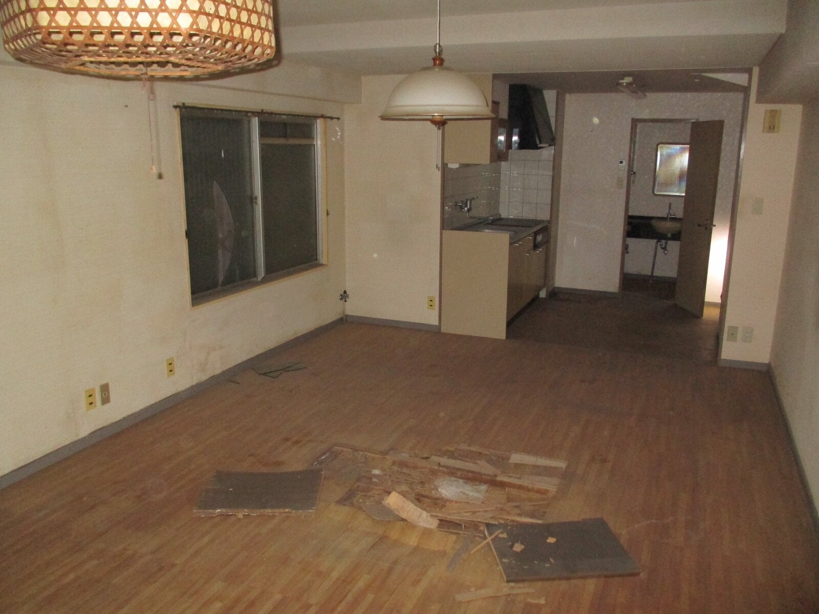 ・フローリングの破損、窓ガラスの破損があるほか、キッチン・浴室・トイレ等の水回りを中心に全面的なリフォームが必要と思われる。