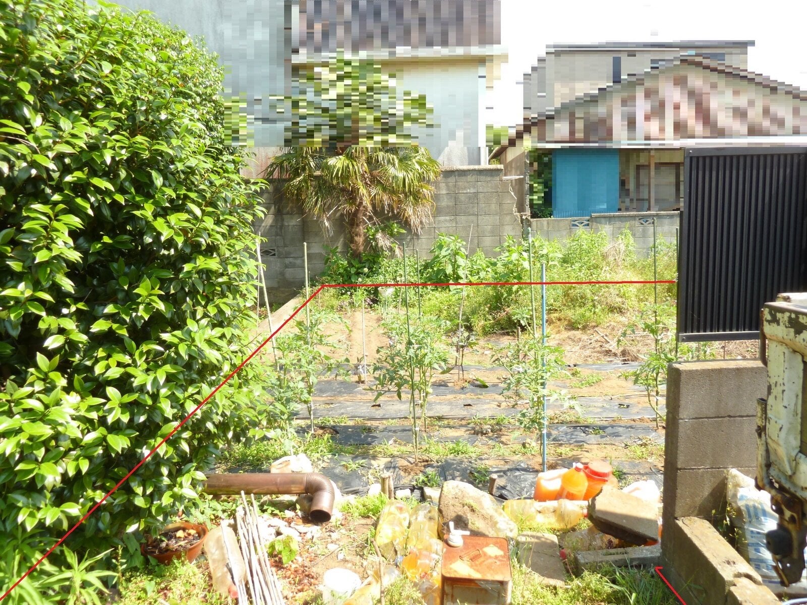・土地上に肥料の袋、ビン、ブロック片等のゴミが投棄されています。