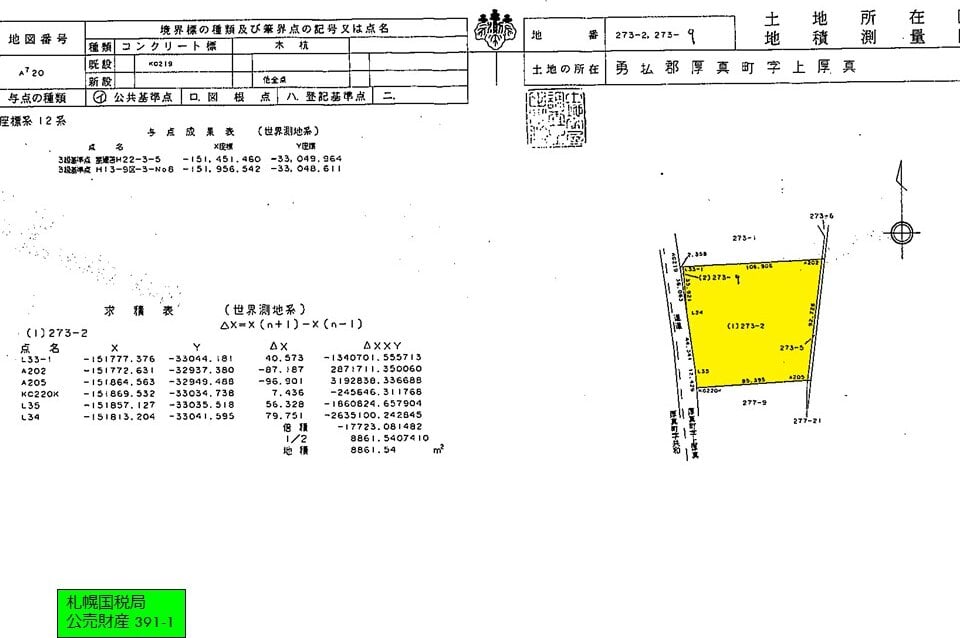 出典:国税庁ホームページ - (391-1 北海道勇払郡厚真町) 土地詳細 | 公売情報