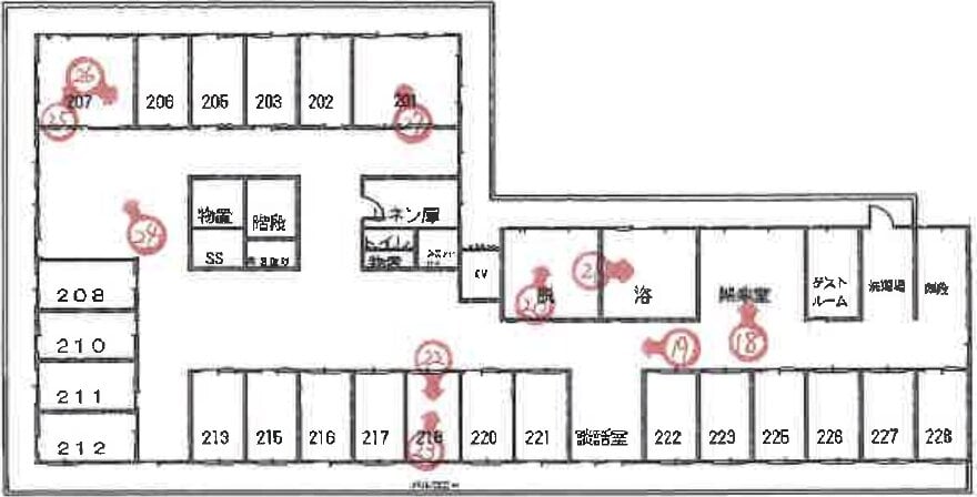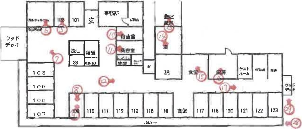 1階:一人部屋19部屋、2階:一人部屋21部屋、二人部屋2部屋 いずれも居宅