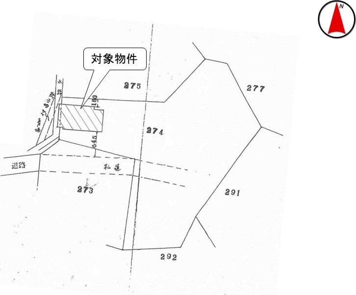 3. 対象物件は、第三者 (共有者A及びB) が所有する件外土地 (地番274番) 上に建築されています。
