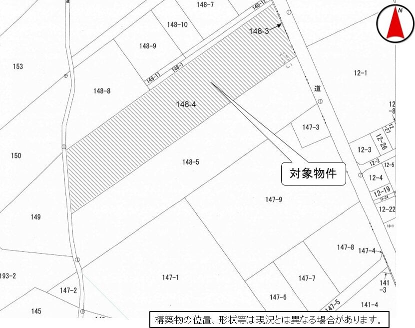 1. 公売財産の面積等は公簿上によるものです。あらかじめその現況及び関係公簿等を確認してください。