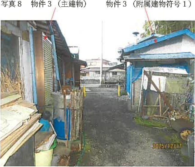 本詳細情報画面の内容については、必ず物件資料3点セット(物件明細書、現況調査報告書及び評価書等)をダウンロードの上、ご確認ください(民事執行法63条2項1号の申出がある場合等があります)。本システムからダウンロードした「現況調査報告書」及び「評価書」に引用されている写真、資料及び図面は、本システム上は添付されていない場合があります。