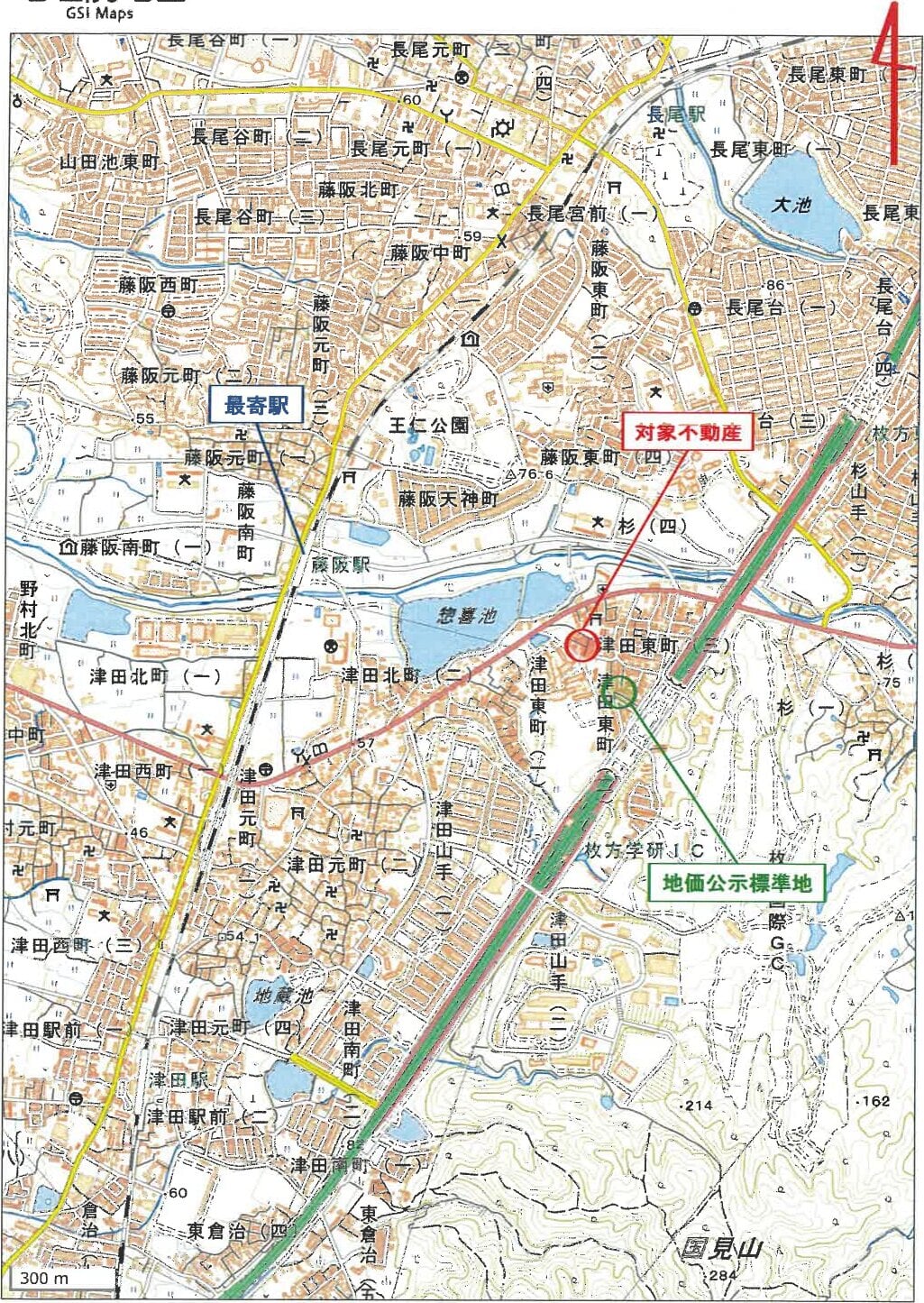最寄バス停 京阪バス 津田病院前バス停 南方 道路距離 約300m